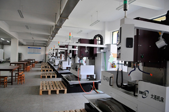 5、高端数控加工实训室 本实训室包含5轴加工中心、车铣复合加工中心、铣车复合加工中心等高端加工设备。培养综合加工能力,通过手工编程完成简单的零件加工,亦可接主计算机辅助制造(CAD/CAM)软件实现自动编程,来完成普通设备上无法完成的内容。如曲面、空间凸轮、球面、汽车模型等。 6、数控模拟实训室 本实训室拥有数台计算机、多媒体教学设备、三轴、四轴、五轴仿真工作站及数控仿真模拟系统。可进行三轴加工中心编程与操作仿真训练、四轴加工技术编程与操作仿真训练、五轴加工技术编程与操作仿真训练。